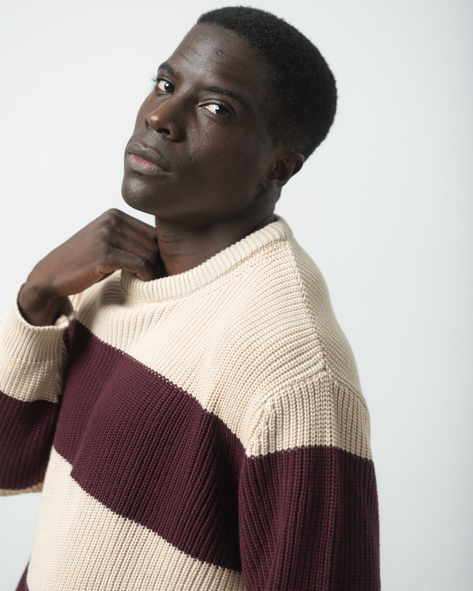 Jersey de Algodón Orgánico rayas Granate y Crema