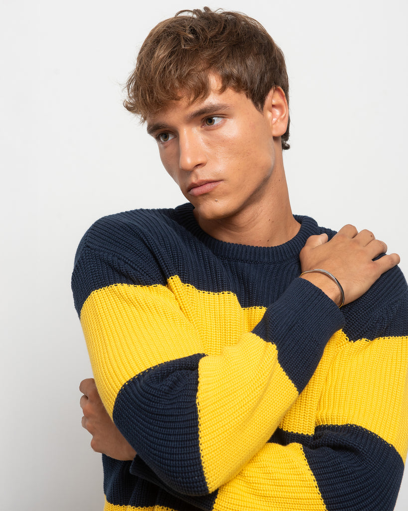 Jersey de Algodón Orgánico rayas Azul y Amarillo