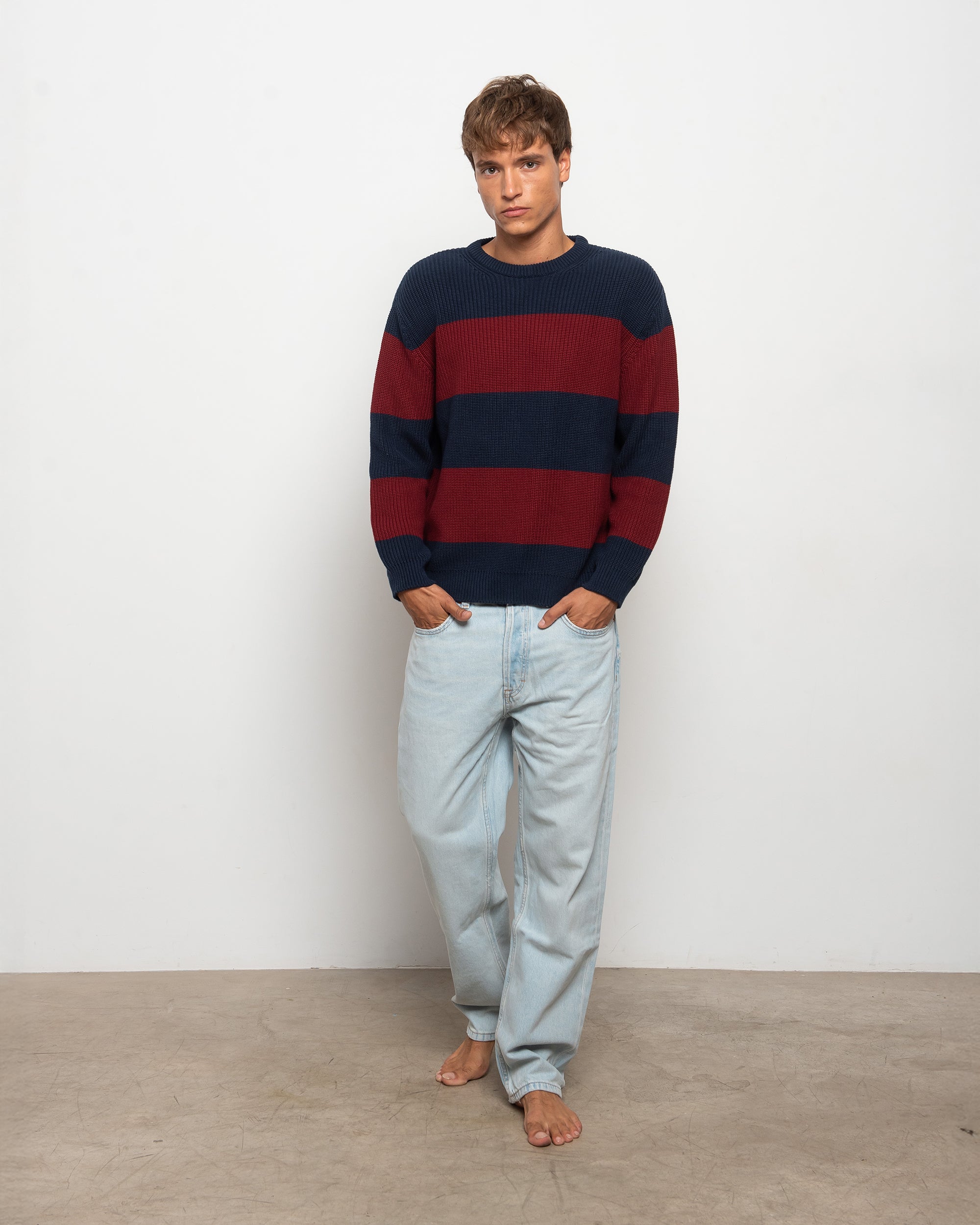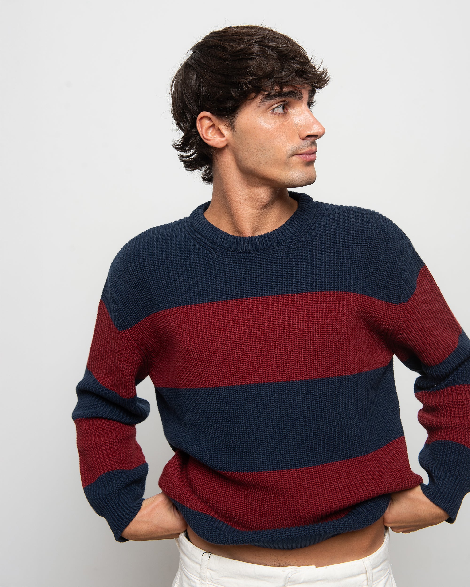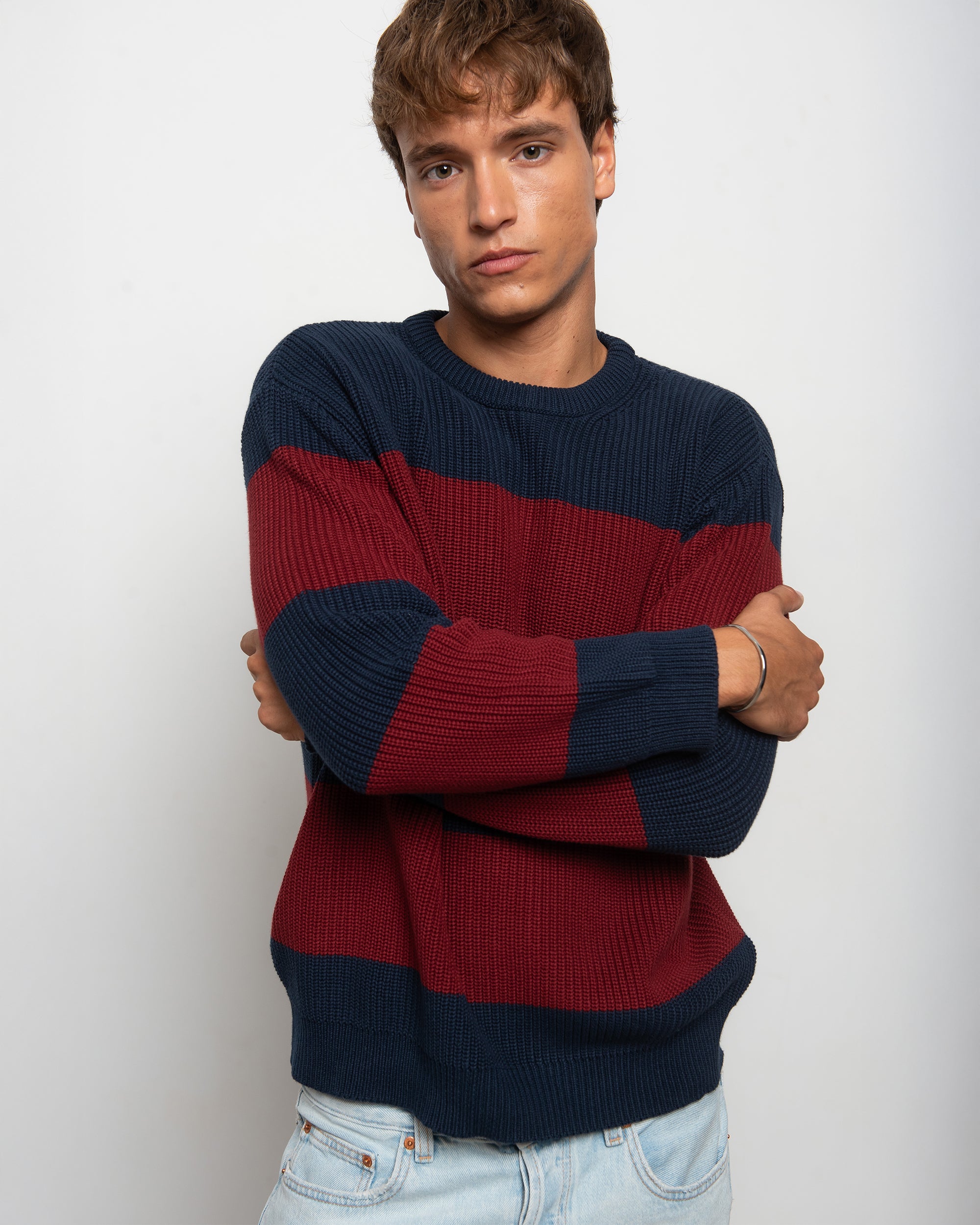 Jersey de Algodón Orgánico rayas Azul y Rojo
